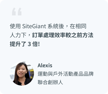 “使用 SiteGiant 系統後,在相同人力下,訂單處理效率較之前方法提升了 3 倍!”