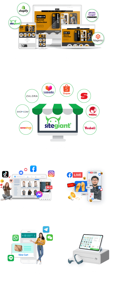 藉助 SiteGiant ERP,我們可以輕鬆地在多個通路中編輯商品列表。我們的庫存水平現在是準確的,我們不再面臨超售問題。除此之外,我們來自不同商城的所有聊天室都整合在一個界面中,這為我們查看和回覆顧客詢問提供了便利。