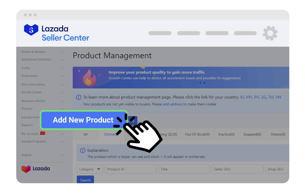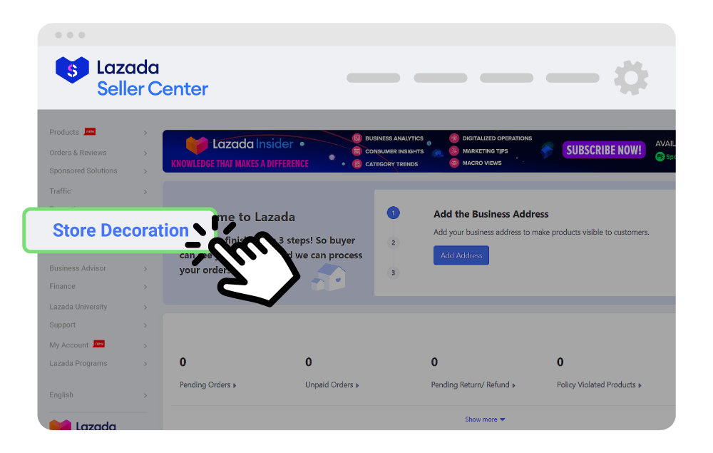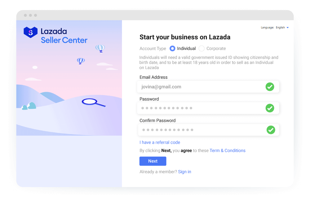 a. Click HERE to access the Lazada Seller Center and click on “Become a seller” to sign up for an account.