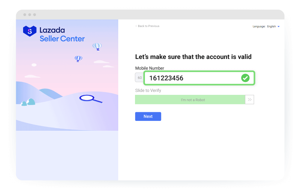 d. Insert your Mobile Number and slide to verify you are not a robot.