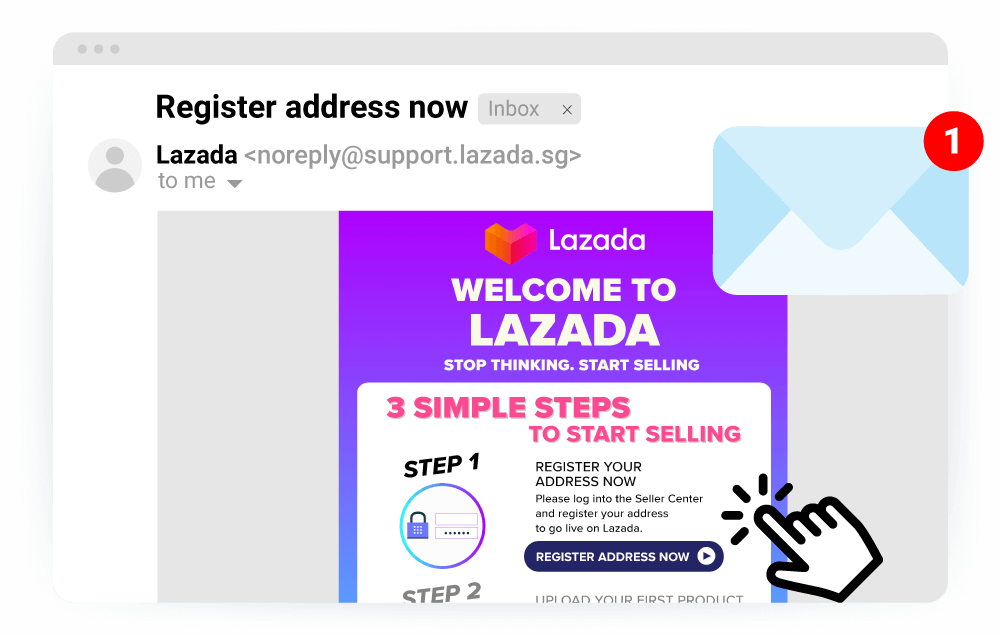 f. Then, wait for the verification email from Lazada. Click on the link provided in the email to activate your Lazada Seller Center account.
