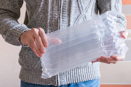 Bubble wrap is a sheet of plastic film that is filled with air bubbles. It is suitable for wrapping electronics or fragile items.