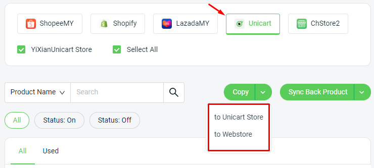 b) Unicart users may now sync Unicart product listings over to other Unicart stores or own webstore and vice versa.