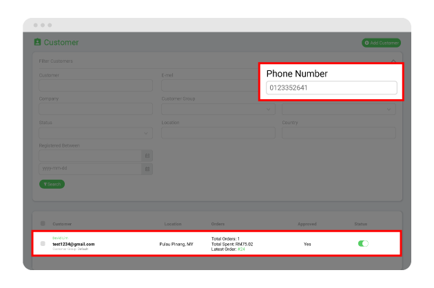 Having difficulty locating your customers when your customers only provide you with their phone numbers? With the newly added “filter customer by phone number” tab, you can now quickly filter and search for your customer with only a phone number.